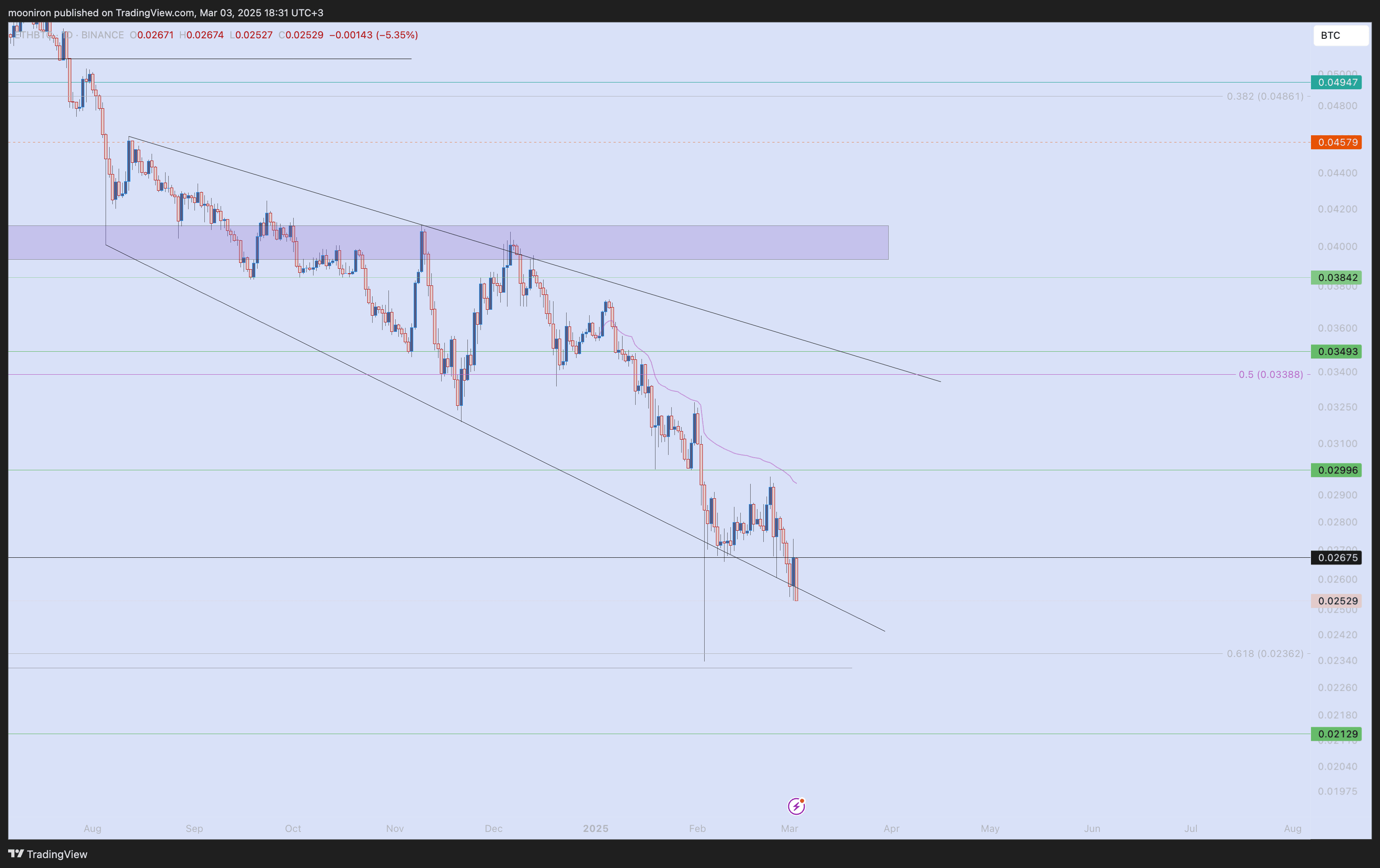 Anche se testa la regione 0,3, continua la sua tendenza al ribasso. Credo che non dovremmo vedere chiusure al di sotto del canale in espansione. Forse il movimento che fornisce l'alta volatilità dell'ETH potrebbe venire attraverso i movimenti del grafico ETHBTC. Potremmo vedere movimenti molto più decisi con il prezzo che si muove verso l'alto o verso il basso. Considero 0,0195 e 0,03 come aree di supporto e resistenza importanti che dovrebbero funzionare durante i movimenti bruschi.