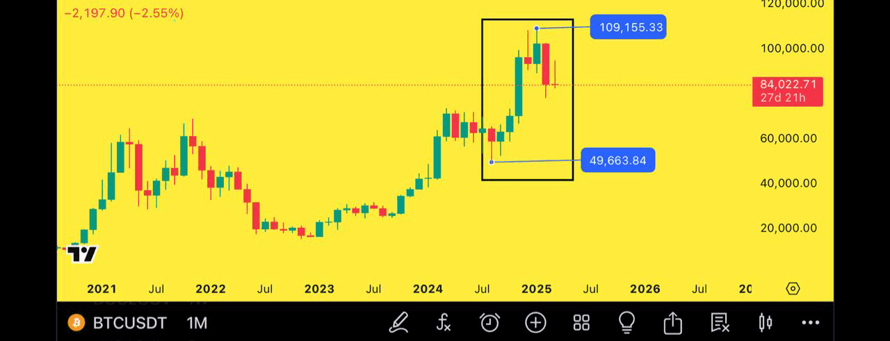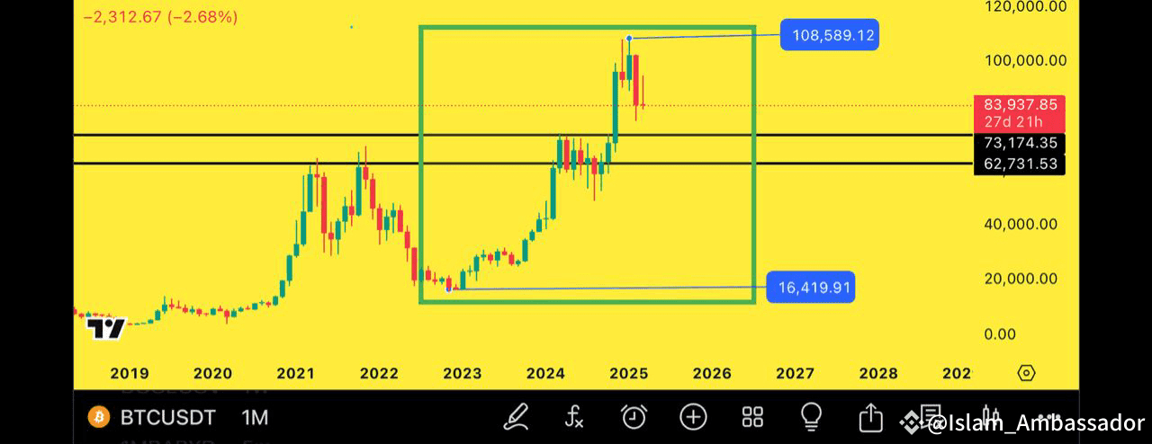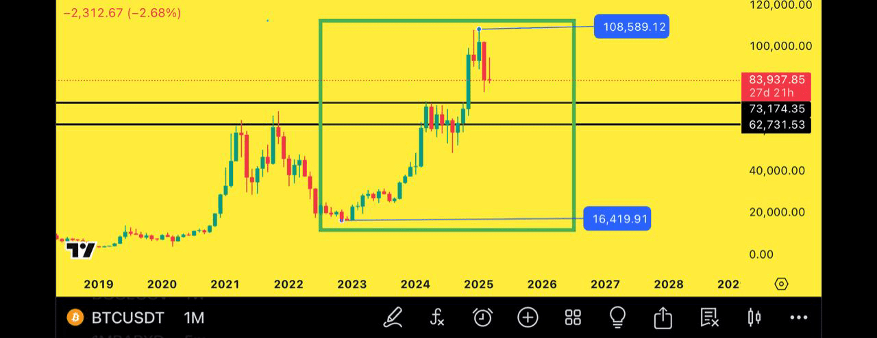 Il mercato è aperto intorno a $15K-$16K e recentemente ha raggiunto un picco a $109K, come indicato nel mio grafico. Dato ciò, è molto probabile che i principali investitori inizino a realizzare profitti, segnando potenzialmente l'inizio di un significativo rally di quattro anni, specialmente con Trump (il presidente degli Stati Uniti) che è pro-crypto.