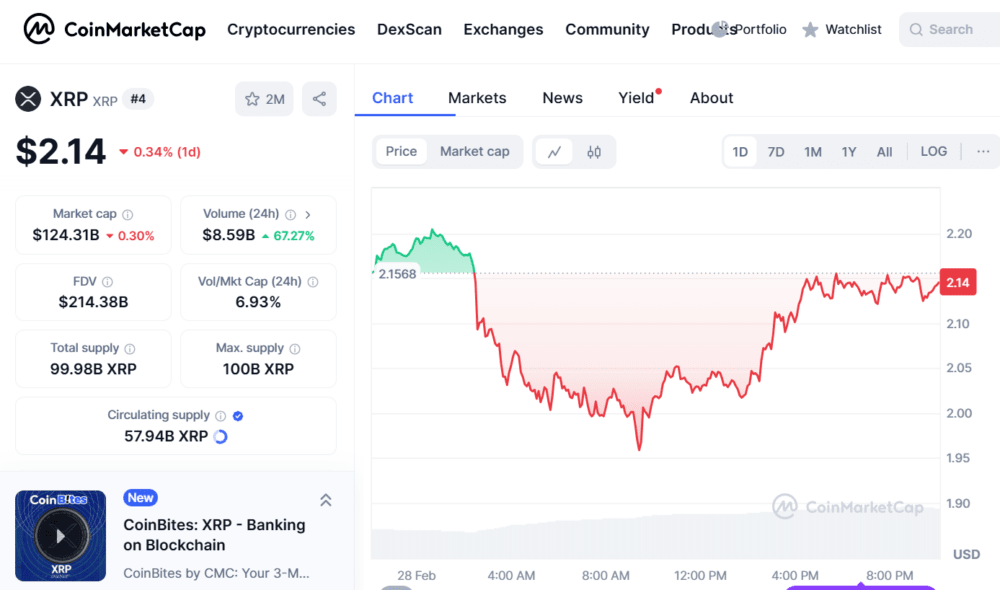 Inoltre, il mercato ha perso circa 560 miliardi di dollari di valore la scorsa settimana. La diminuzione dell'appetito al rischio degli investitori ha portato a una maggiore volatilità, rendendo più difficile per il prezzo di XRP mantenere qualsiasi slancio rialzista. La discesa del mercato ha giocato un ruolo significativo nei problemi attuali del prezzo di XRP.