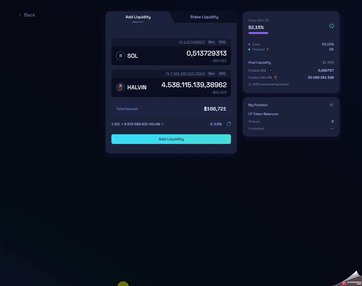 3. Fai farming su Raydium (Esempio: HALVIN che paga oltre il 1000% APR)