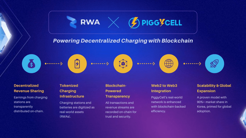 Da anni, PiggyCell domina l'industria della ricarica mobile condivisa della Corea del Sud, con oltre 13.000 stazioni di ricarica e più di 100.000 batterie portatili, alimentando senza problemi milioni di utenti in centri commerciali, hub di transito e negozi di convenienza. È un sistema costruito su convenienza e accessibilità, ma fino ad ora è rimasto centralizzato: il reddito è raccolto, distribuito e gestito da un'unica entità.