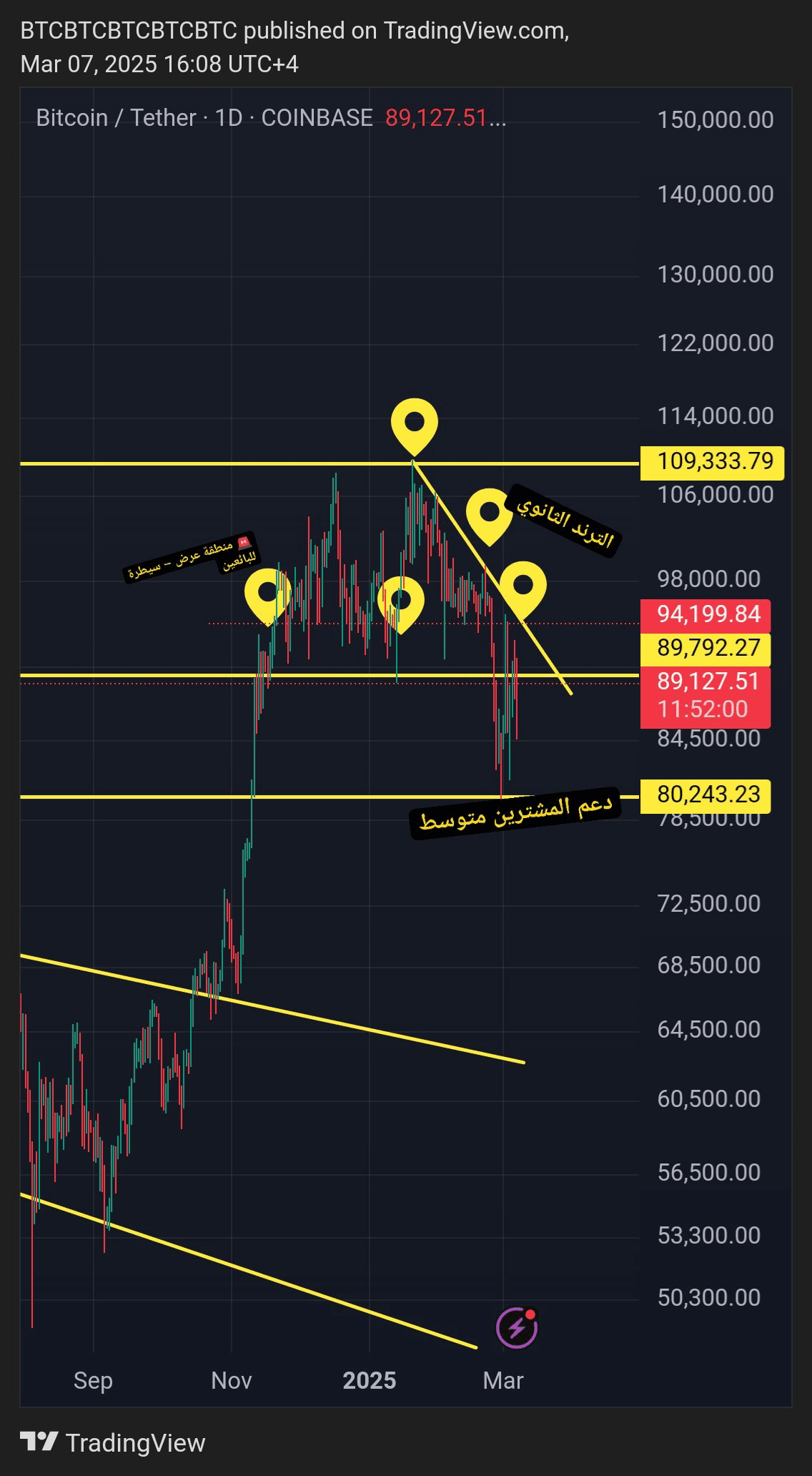 📍 Le aree 78.250 - 83.000 dollari sono considerate un supporto di media forza per i compratori.