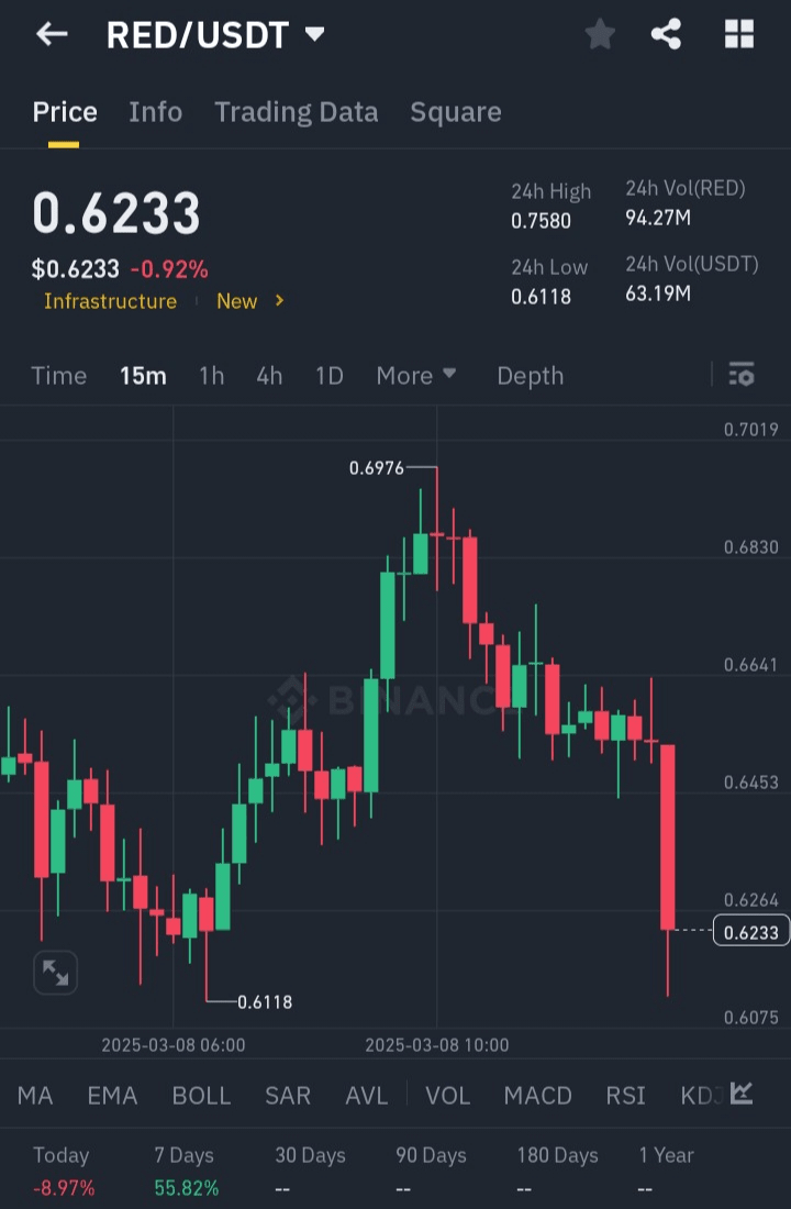 Attualmente, il prezzo è in prossimità del livello di supporto di $0.6118, con un rimbalzo potenziale previsto. In futuro, se il prezzo supera il livello di resistenza di $0.6550, potrebbe portare a un ulteriore slancio rialzista, mentre una rottura sotto $0.6100 potrebbe segnalare una continuazione del trend ribassista. Va bene, affinerò il segnale in base al prezzo attuale e fornirò punti di obiettivo più stretti.