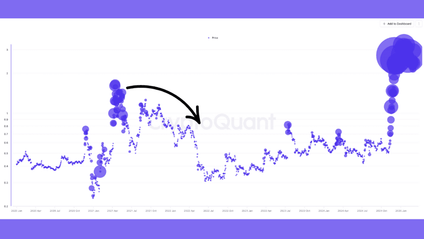 • Lezione di storia: Nel 2021, un picco di volume simile è avvenuto prima di un crollo significativo.