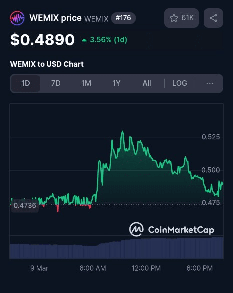 Aumento del Prezzo: WEMIX ha registrato un notevole aumento del +17,25% del suo valore nelle ultime 24 ore, rendendolo il miglior guadagnatore tra le criptovalute.