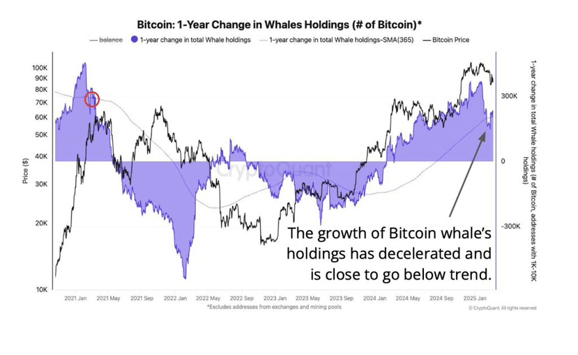 Il rallentamento degli acquisti delle balene di Bitcoin preannuncia un calo della domanda