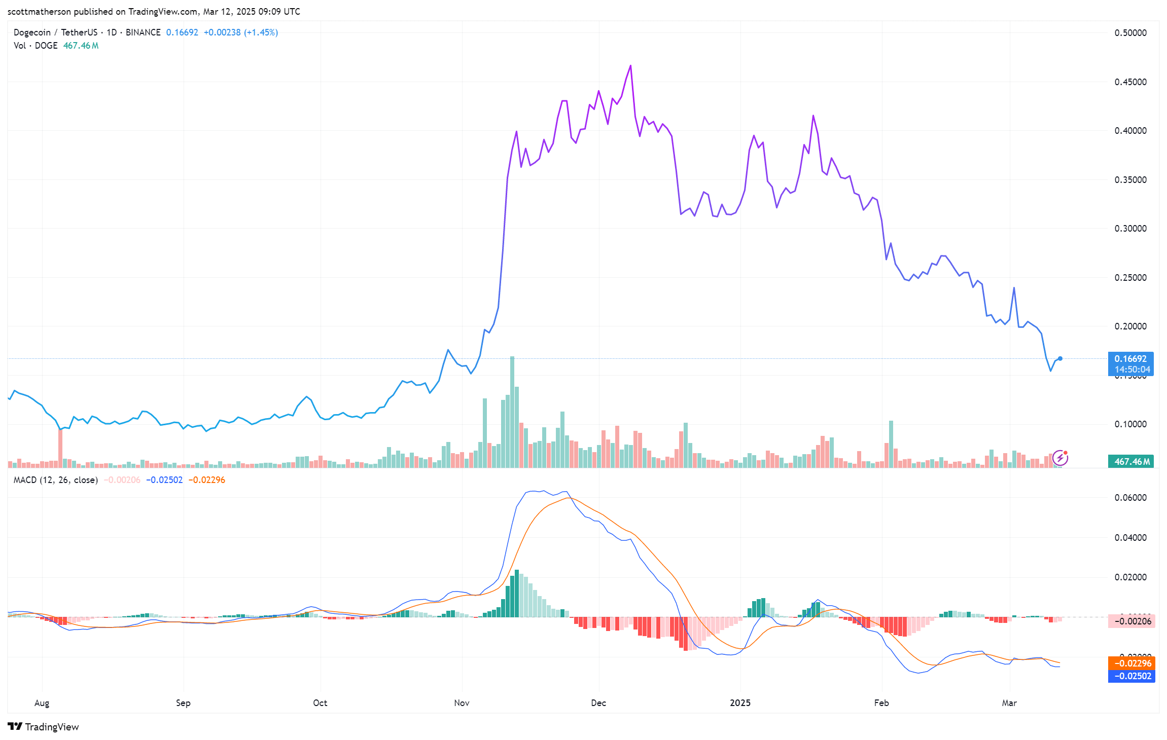 Secondo i dati di CoinMarketCap, al momento della scrittura, il prezzo di Dogecoin è di circa 0.16 dollari, con un aumento di oltre il 2% nelle ultime 24 ore. Anche se ci sono forti fluttuazioni di mercato nel breve termine, le opinioni rialziste degli analisti offrono una certa aspettativa ottimistica per il futuro di DOGE.