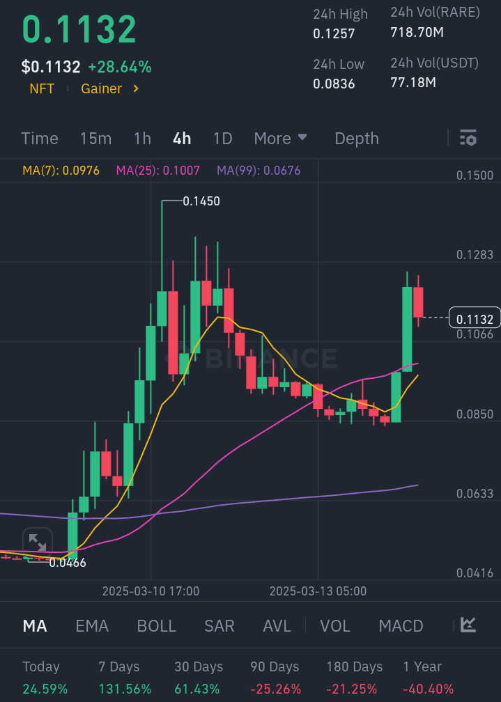 Ma ecco la vera sorpresa: Nonostante i suoi enormi guadagni recenti, RARE Coin è ancora sottovalutato rispetto al suo vero potenziale. Con un massimo di 24 ore di $0.1257 e un forte rimbalzo da $0.0836, sta mostrando una forza incredibile e sta formando un modello rialzista nei grafici. Le Medie Mobili (MA7, MA25) si stanno allineando per un perfetto setup di rottura, e il volume sta aumentando, indicando una forte pressione d'acquisto.