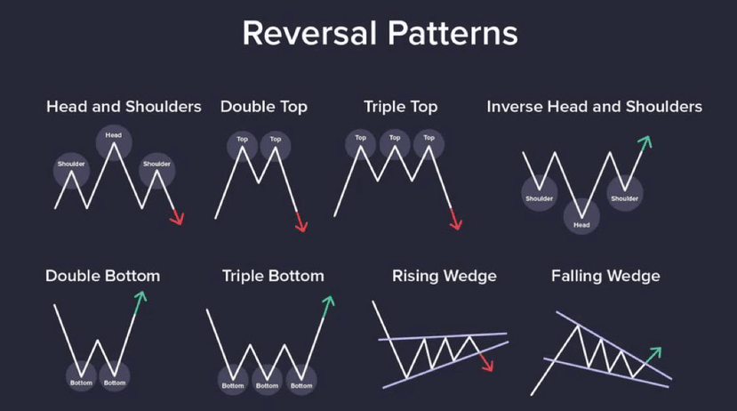 ❖ I modelli di reversal nei grafici delle criptovalute includono teste e spalle