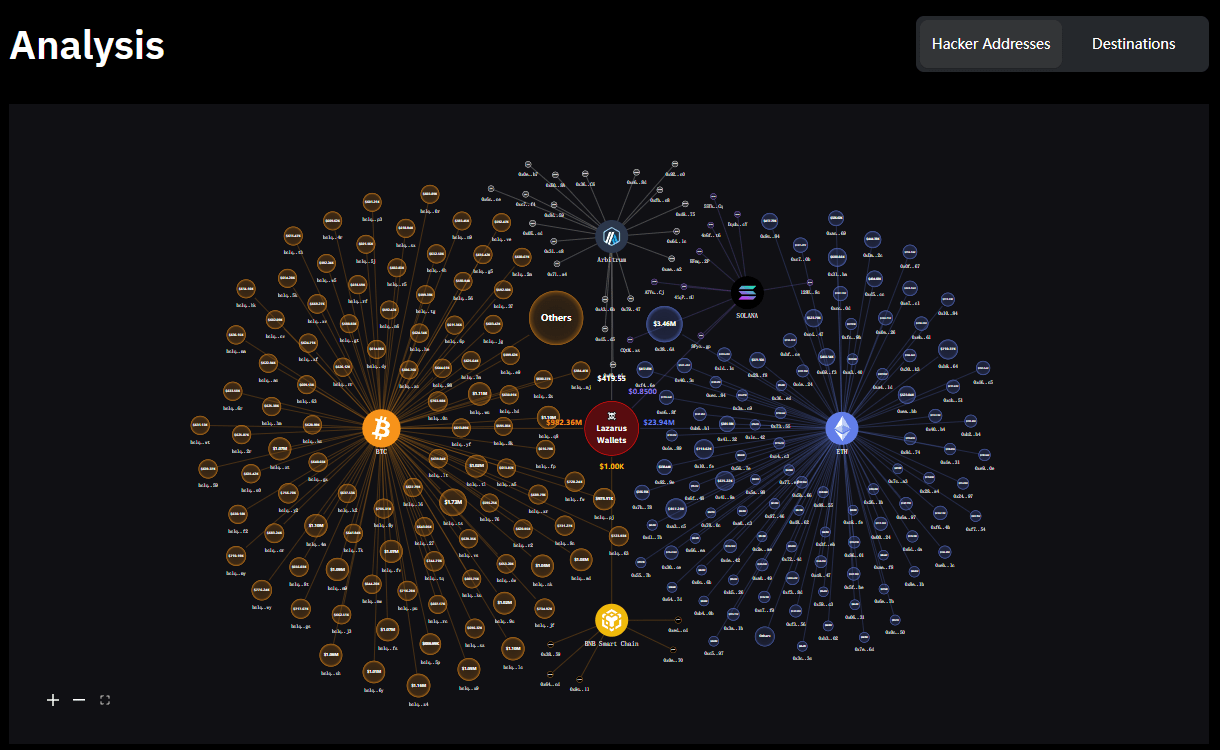 Percorso di mixing di criptovalute rubate da Bybit (fonte: LazarusBounty)