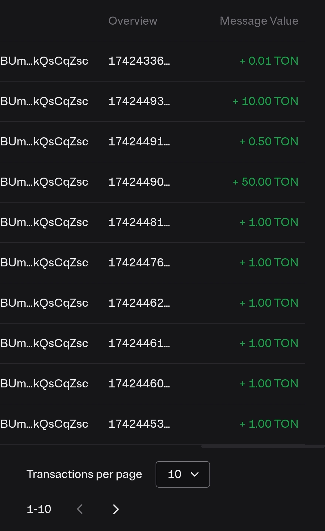 Alcuni dei suoi ultimi pagamenti ricevuti in TON