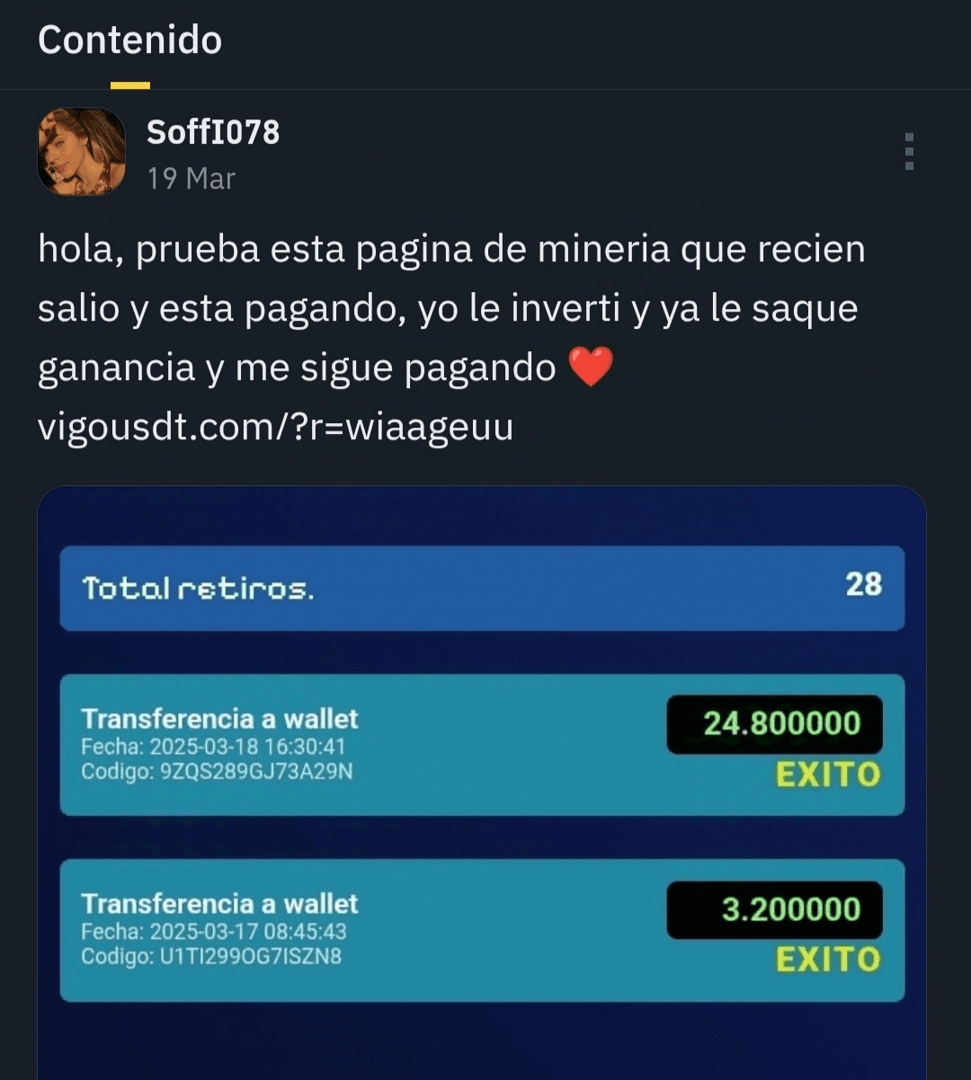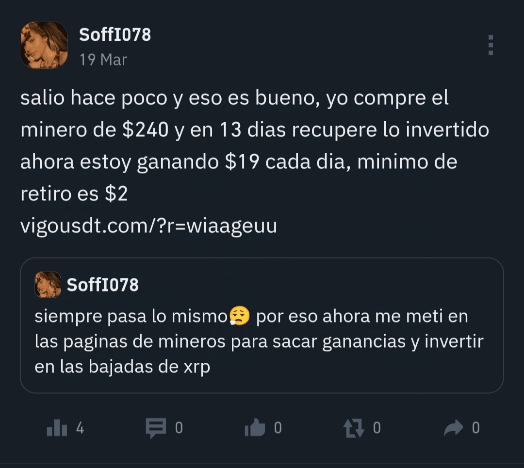 Con mia sorpresa, molte persone richiedono informazioni per lavorare nella nuova miniera che questa account (chiamiamola Sofi come indica il suo nome utente) offre.