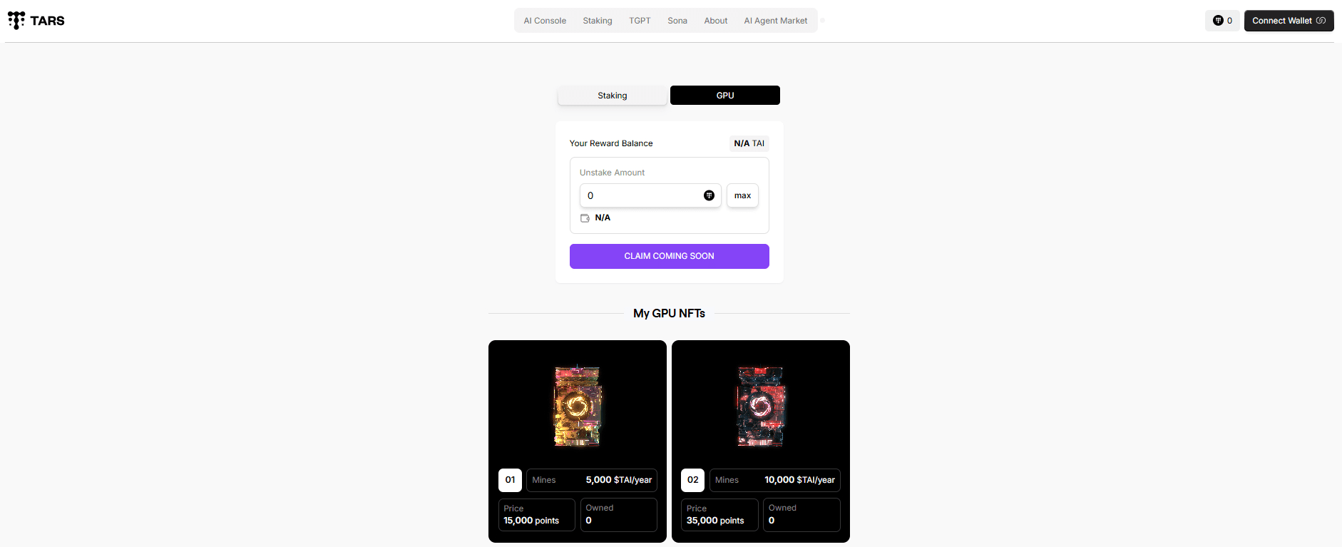 Presto, gli NFT GPU saranno integrati nel sistema di staking, consentendo agli utenti di guadagnare premi ancora maggiori in base alle capacità di ciascun NFT GPU. Ogni NFT GPU avrà caratteristiche uniche che offriranno benefici esclusivi ai possessori.