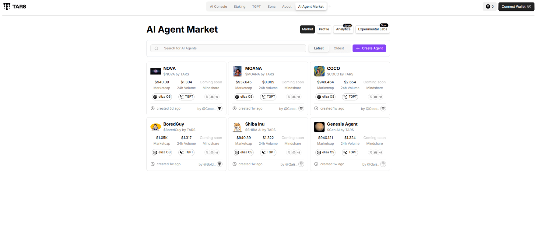 4- Mercato degli agenti TARS AI: Un mercato AI decentralizzato
