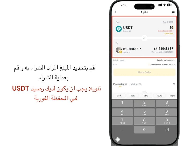 Nota: devi avere un saldo USDT nel portafoglio istantaneo