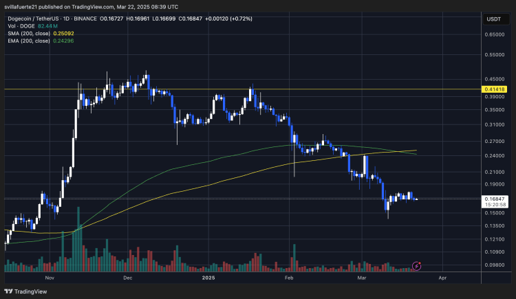 Dal 11 marzo, Dogecoin (DOGE) è rimasto in un intervallo di oscillazione ristretto tra 0,16 e 0,18 dollari, mancando di un chiaro breakout direzionale. Questa lunga fase di consolidamento ha lasciato gli investitori inquieti, specialmente in un contesto di crescente incertezza macroeconomica globale, politiche monetarie più restrittive e persistenti tensioni commerciali, mentre il mercato delle criptovalute nel suo complesso è in un periodo di stagnazione, con gli investitori che stanno monitorando attentamente i catalizzatori chiave che potrebbero determinare la prossima direzione del mercato.