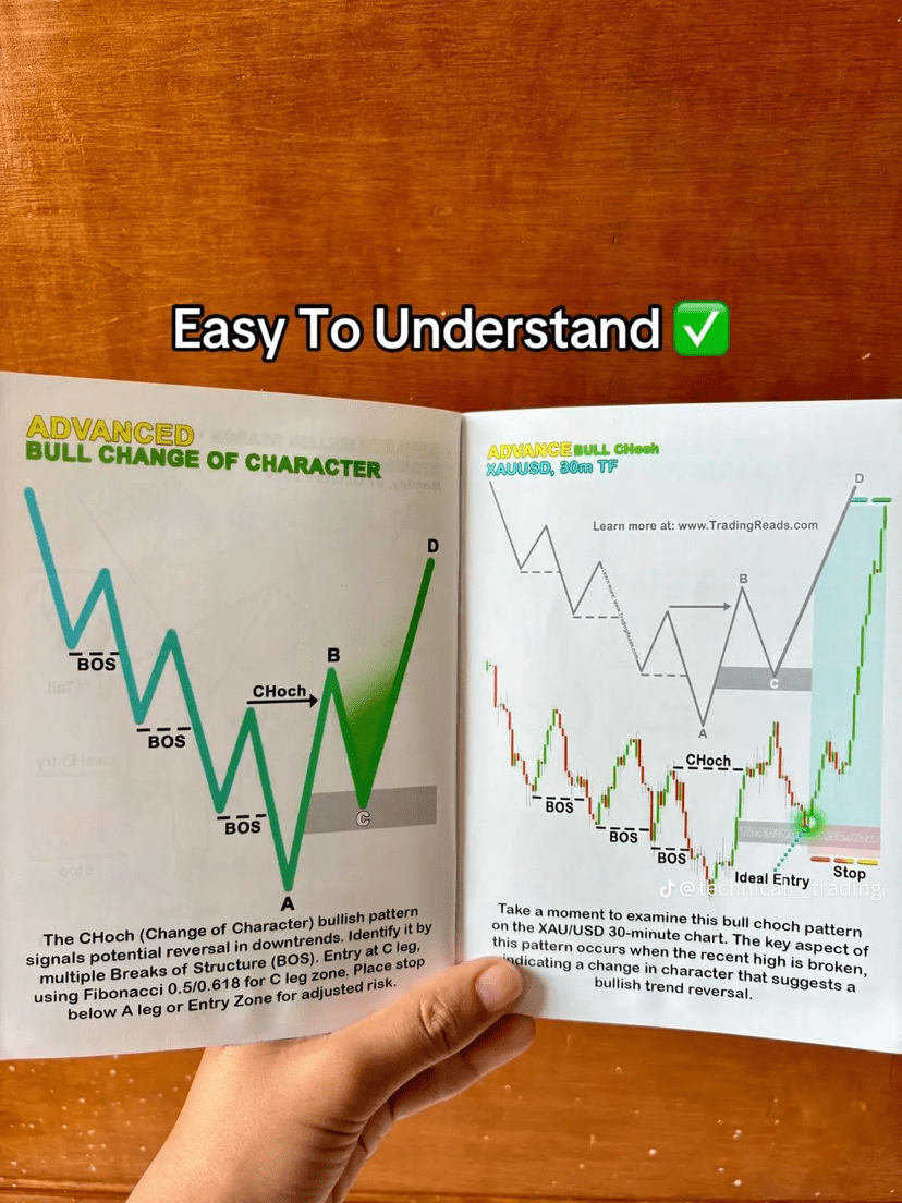 Il CHoCH (Cambiamento di Carattere) modello rialzista è un segnale potente per potenziali inversioni in un trend al ribasso! 🔄📊