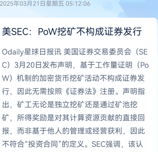 Il 21 marzo, la SEC ha dichiarato anche che il mining proof-of-work non costituisce un'emissione di titoli, il che aumenta la probabilità di approvazione per il suo ETF.