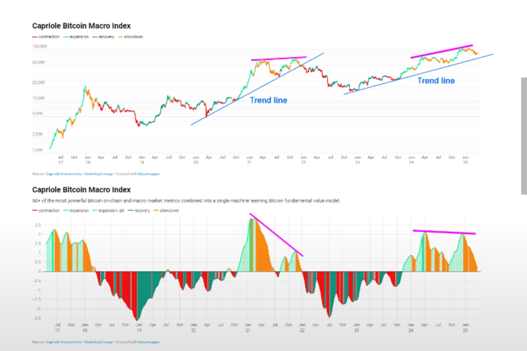 'Bitcoin. In una discussione sui social media il 27 marzo, i commentatori di Bitcoin hanno segnalato segnali preoccupanti dall'Indice Macro di Bitcoin di Capriole.