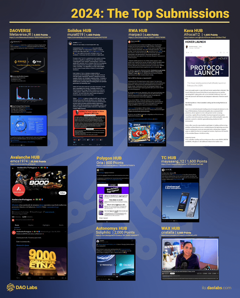 Il riconoscimento è un potente motivatore. Il 1 gennaio 2025, DAO Labs ha pubblicato un tweet per celebrare i migliori contributori in tutti i hub di Social Mining. Vedere il mio nome elencato come il miglior punteggio per il Hub Autonomys con 2.000 punti è stato un momento surreale