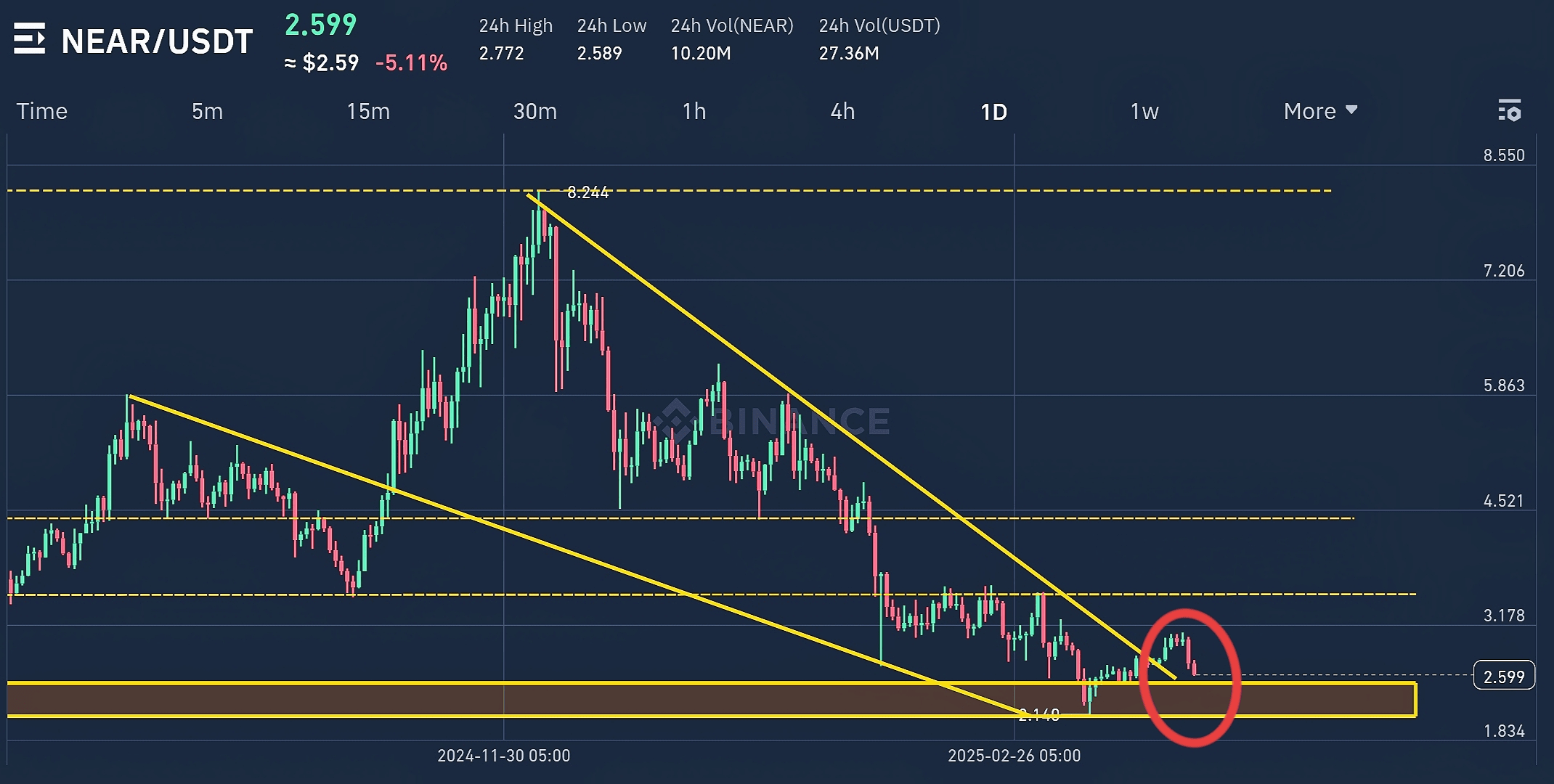 🔹Se NEAR perde la zona di $2.50 con un forte volume di vendita, aspettati un calo verso $2.30 o anche $2.10.