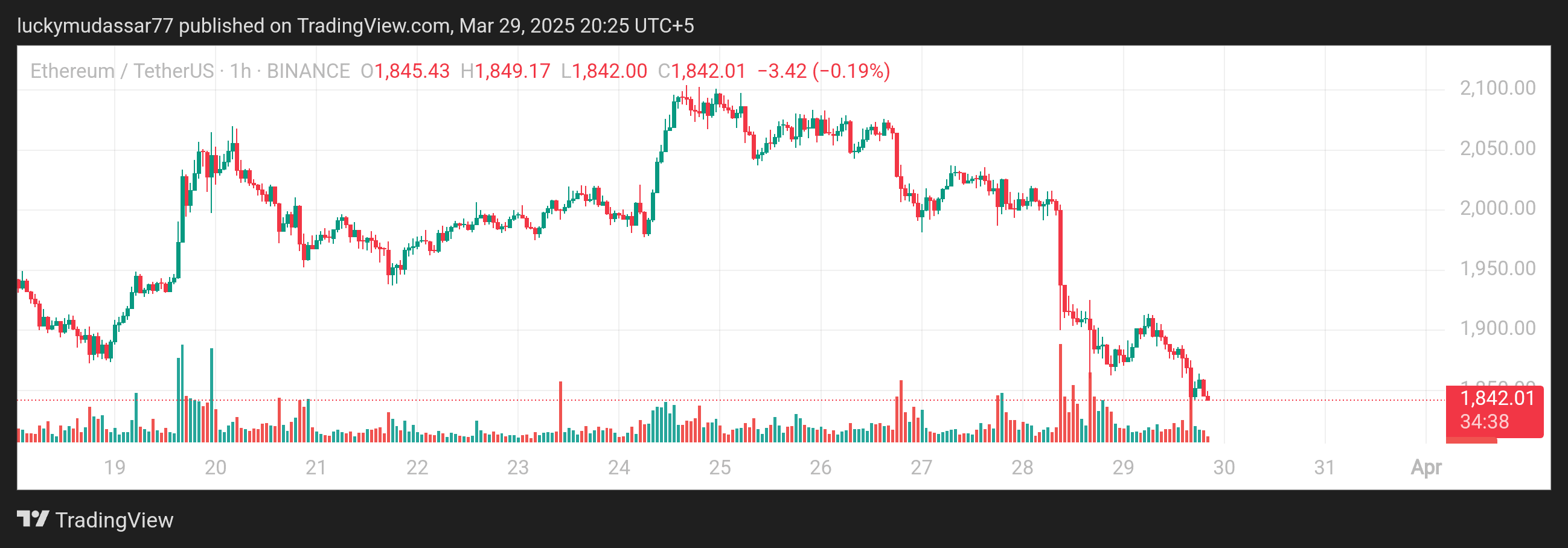 * **$1,842 (Prezzo Corrente):** Questo è il livello di supporto immediato. Se il prezzo scende sotto questo, è probabile un ulteriore ribasso.