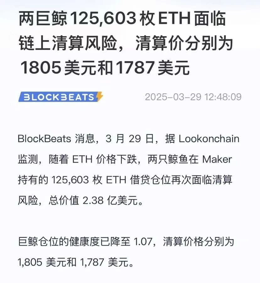 Il prezzo di ETH è tornato sotto 1800, le posizioni long a leva accumulate nell'ultimo mese sono state nuovamente liquidate.
