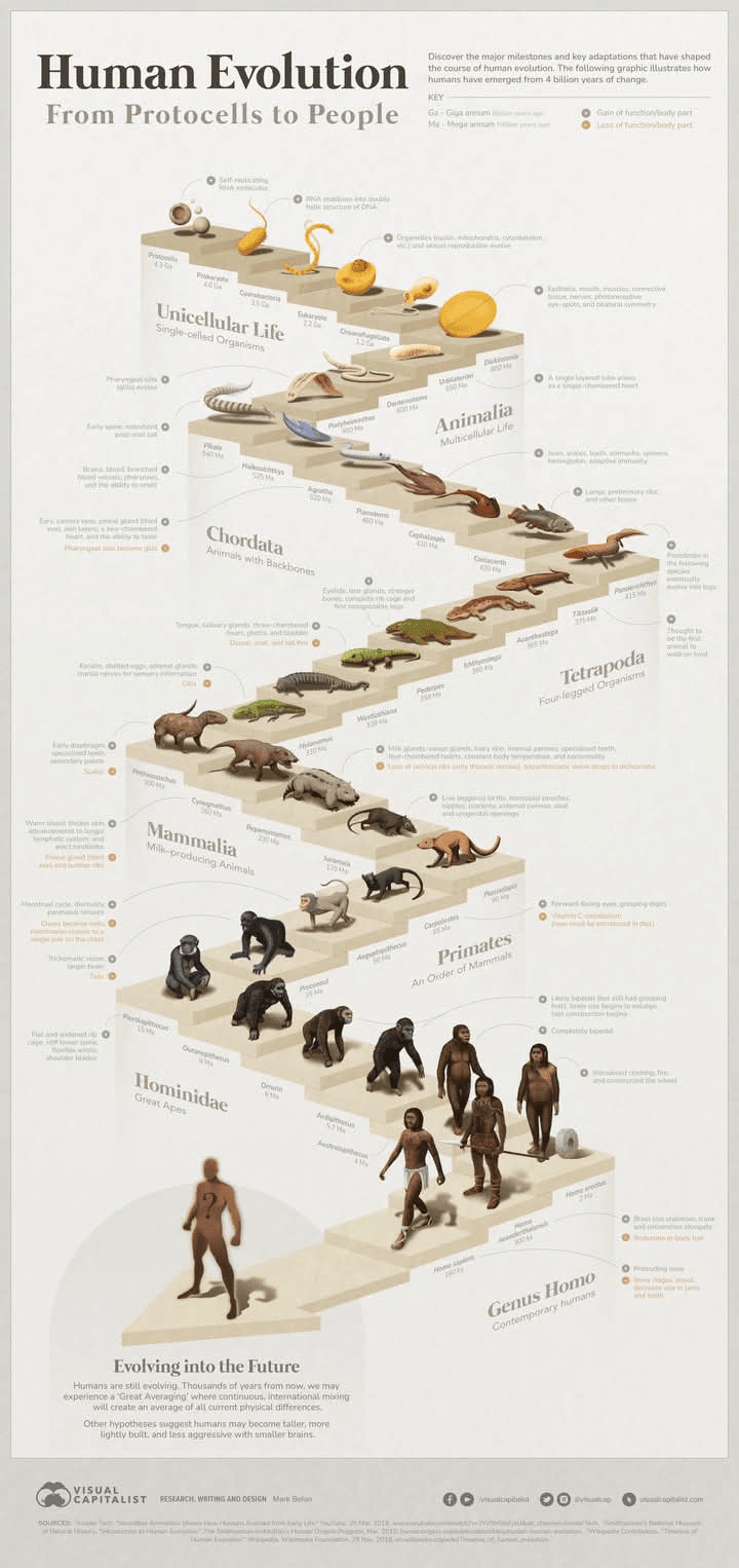 Dalle Protocellule alle Persone: Un viaggio visivo attraverso 4 miliardi di anni di evoluzione umana