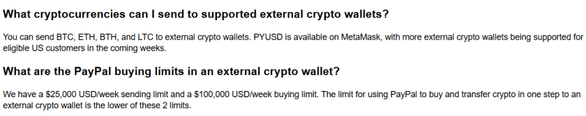 PayPal non ha ancora annunciato ufficialmente, ma ciò che appare sul sito web del servizio indica il supporto per queste criptovalute in alcune aree degli Stati Uniti.