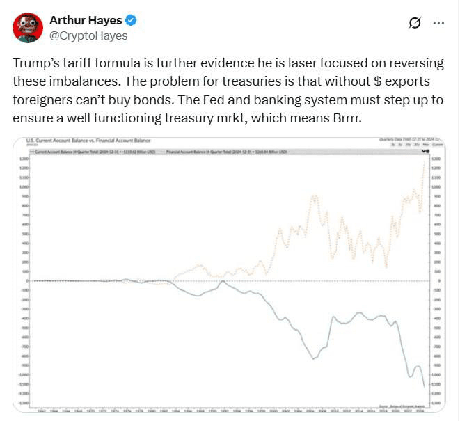 Arthur Hayes è convinto che il sistema della Reserva Federale dovrà allentare la politica monetaria e avviare la stampa di denaro, poiché i dazi ridurranno le esportazioni degli Stati Uniti e il giro d'affari del dollaro nel mondo.