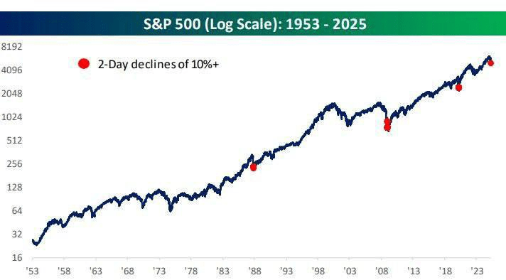 LE ULTIME 2 VOLTE CHE L'S&P 500 È SCESO DEL 10% O PIÙ IN 2 GIORNI SONO STATE A MARZO 2020 (CRASH COVID) E NOVEMBRE 2008 (IL GRANDE CRASH FINANZIARIO).