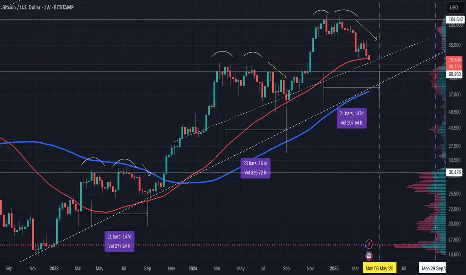 Ingrandendo nel timeframe giornaliero, l'azione dei prezzi sta sviluppando un classico pattern di correzione ABC. Questo spesso precede un ulteriore ribasso e, in questo caso, punta a $70K come possibile prossima destinazione.
