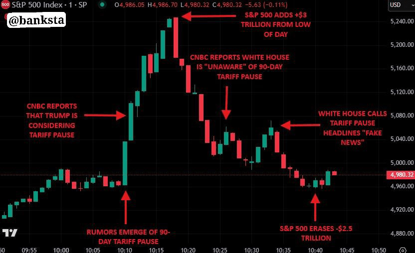 Alle 10:26 del mattino, CNBC riporta che le informazioni sulla pausa tariffaria di 90 giorni erano errate.
