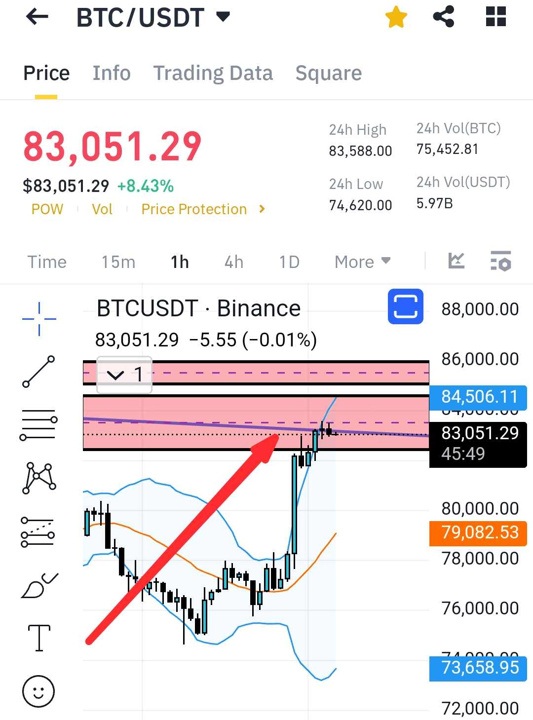 Sto osservando BTC tornare verso la zona 77 78, vado short su questa cosa