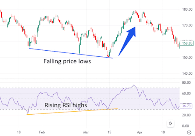 - Divergenza ribassista: I prezzi salgono, ma l'RSI scende.
