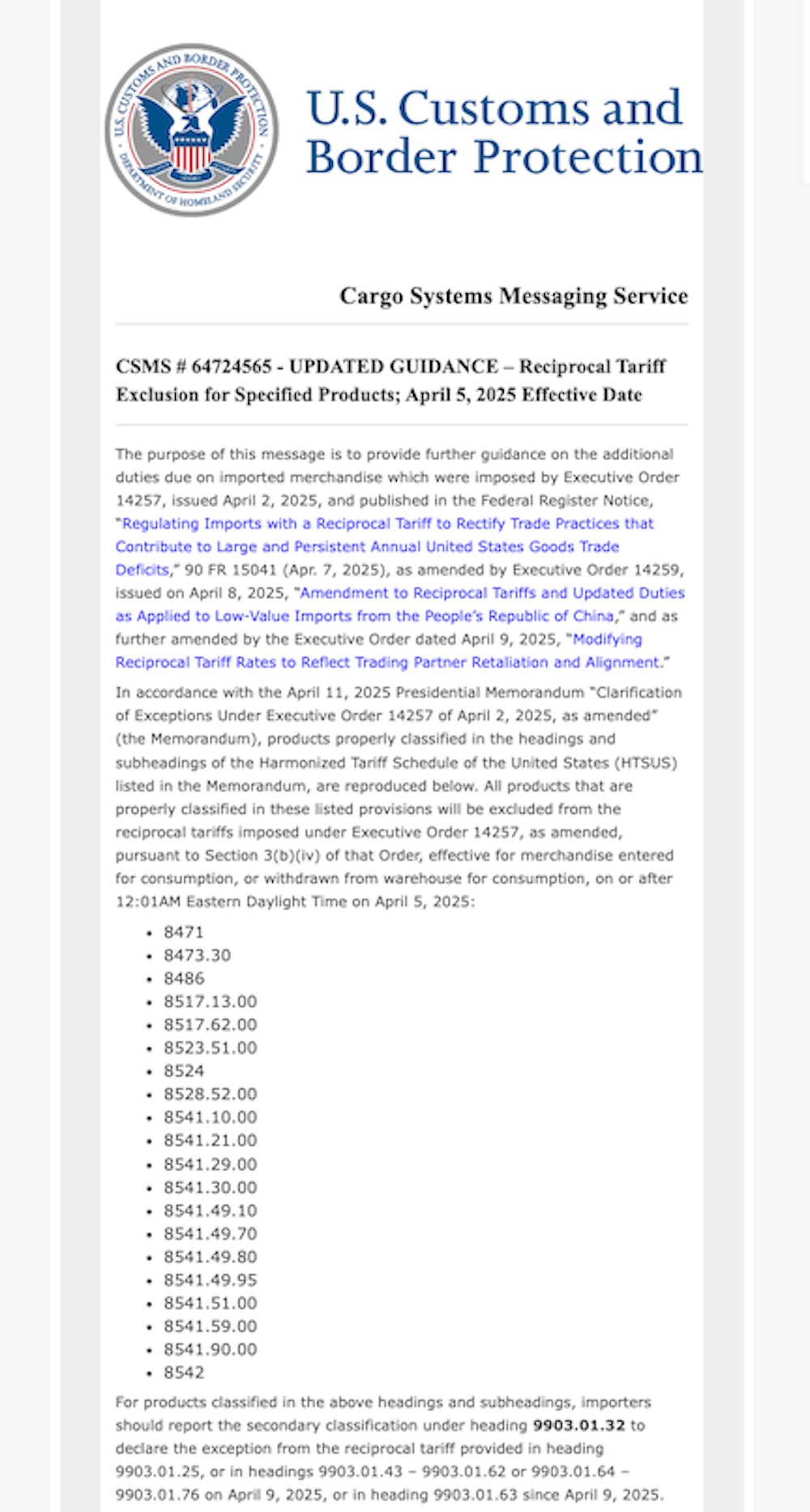 Secondo l'Ufficio delle Dogane e della Protezione delle Frontiere degli Stati Uniti, le schede di memoria, i modem, i diodi, i semiconduttori e altri prodotti elettronici sono stati esclusi dai dazi commerciali in corso.