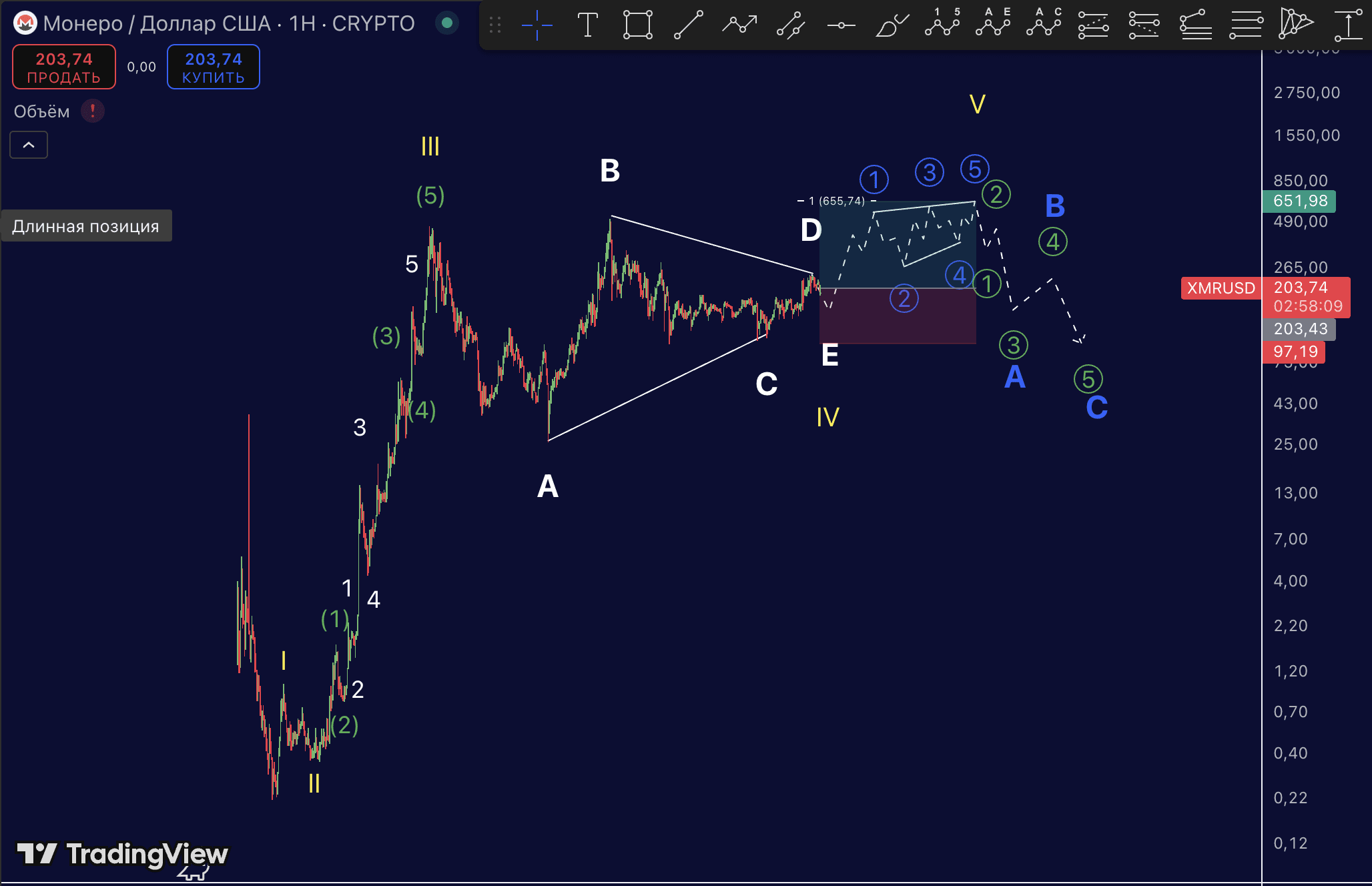 Bro, se hai mai cercato di tracciare le onde di Elliott e non hai abbandonato dopo il terzo paragrafo di Prechter — benvenuto nel club dei sofferenti che credono ancora nella struttura del mercato. Oggi nel mirino — XMR (Monero), e qui, come si suol dire, non ci sono scam e metriche. Qui il triangolo sta completando la sua sinfonia, e io sento già il primo violino dell'onda E. Tieni duro, V è in arrivo.