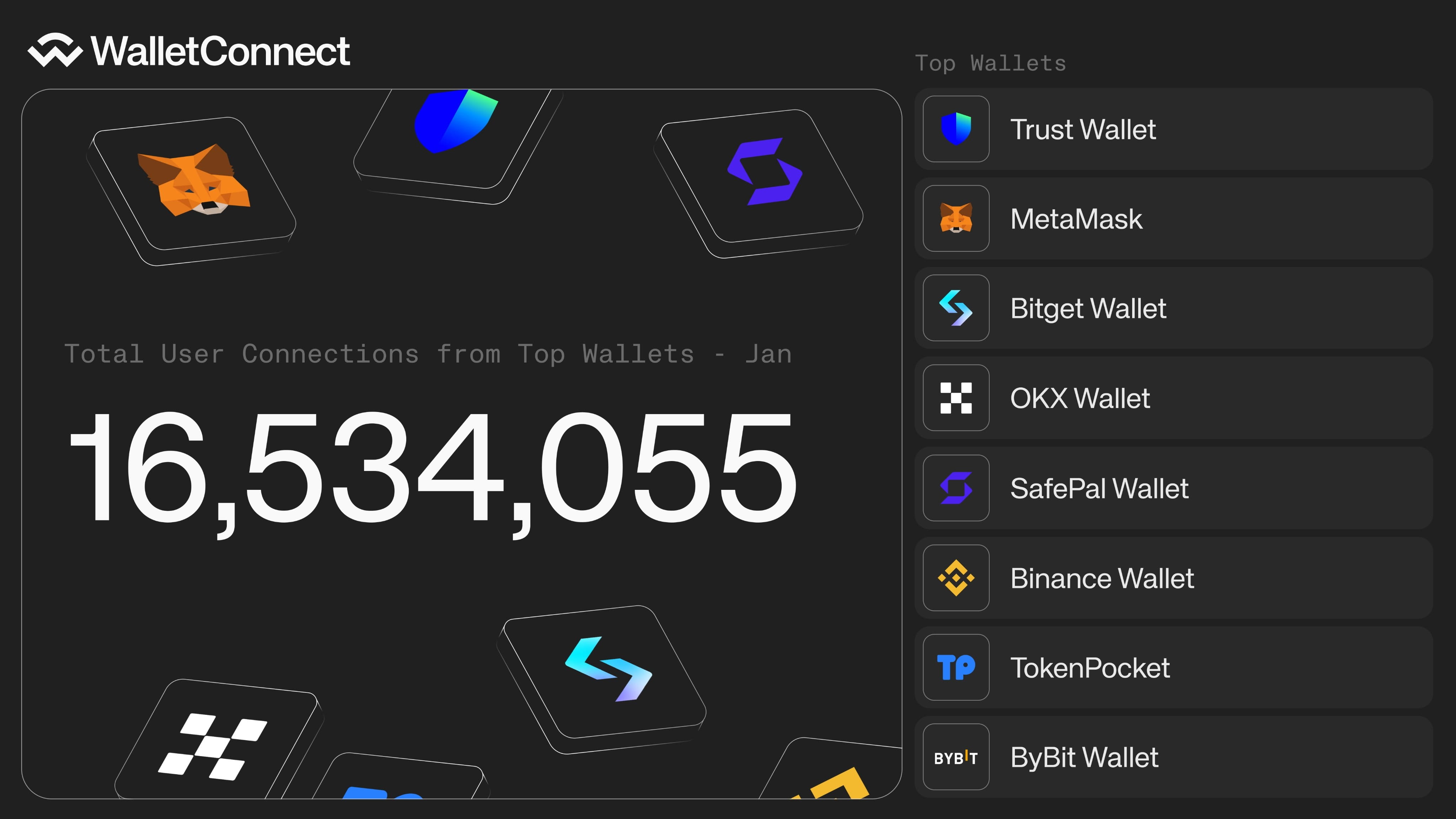 Dal trading DeFi ai mercati NFT, WalletConnect supporta molte delle esperienze che gli utenti di criptovalute danno per scontate. È integrato ovunque – da portafogli popolari come MetaMask e Trust Wallet a scambi importanti come Binance e oltre. I numeri dipingono un quadro chiaro della sua portata e slancio: