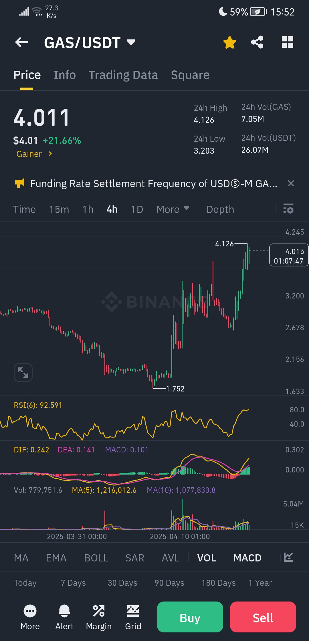 ✅ Volo da razzo! Dopo un forte calo a $1.75, GAS è tornato con forza per registrare un nuovo massimo a $4.12 – con un aumento che supera il 130%! Questo riflette un grande afflusso di liquidità acquista.