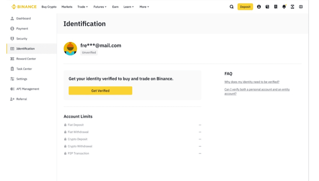 Per utilizzare appieno il tuo account (come comprare criptovalute o aumentare i limiti di prelievo), devi verificare la tua identità. Ecco come: