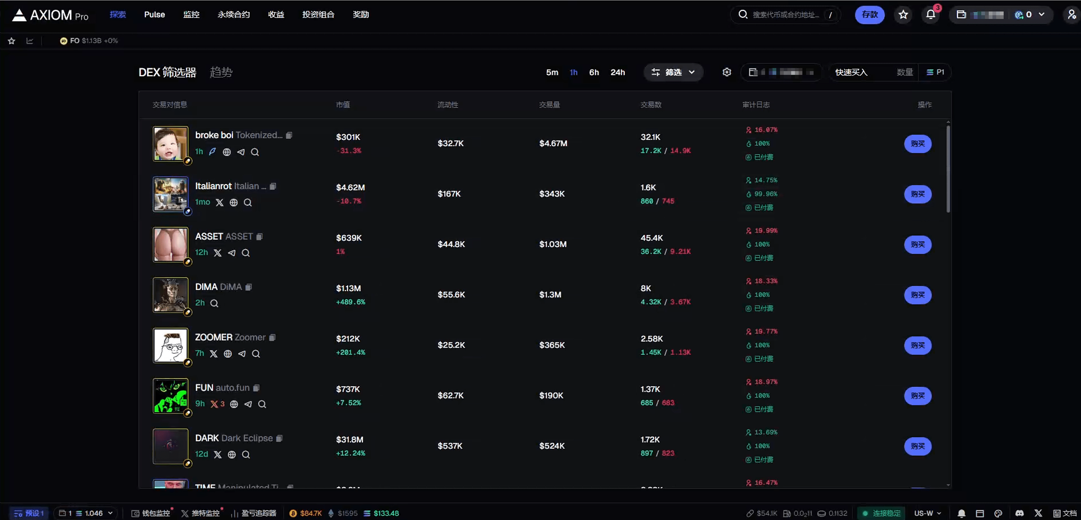 C'è anche una finestra di ricerca del token, colpito direttamente da ca, copia la ricerca e poi acquista, la velocità di trading di Axiom è molto veloce!