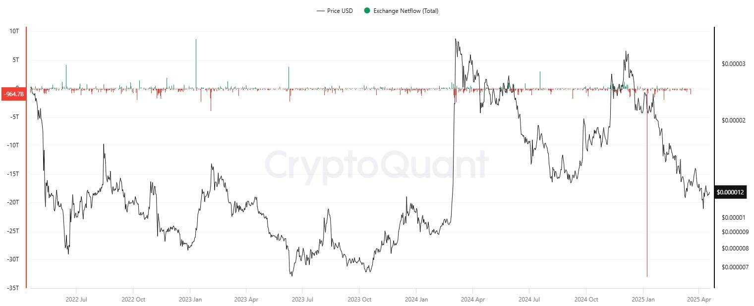Il flusso netto di scambi di SHIB è anche degno di osservazione. Le uscite hanno dominato gli afflussi ultimamente, suggerendo che i detentori stanno trasferendo token da piattaforme centralizzate a custodia personale.