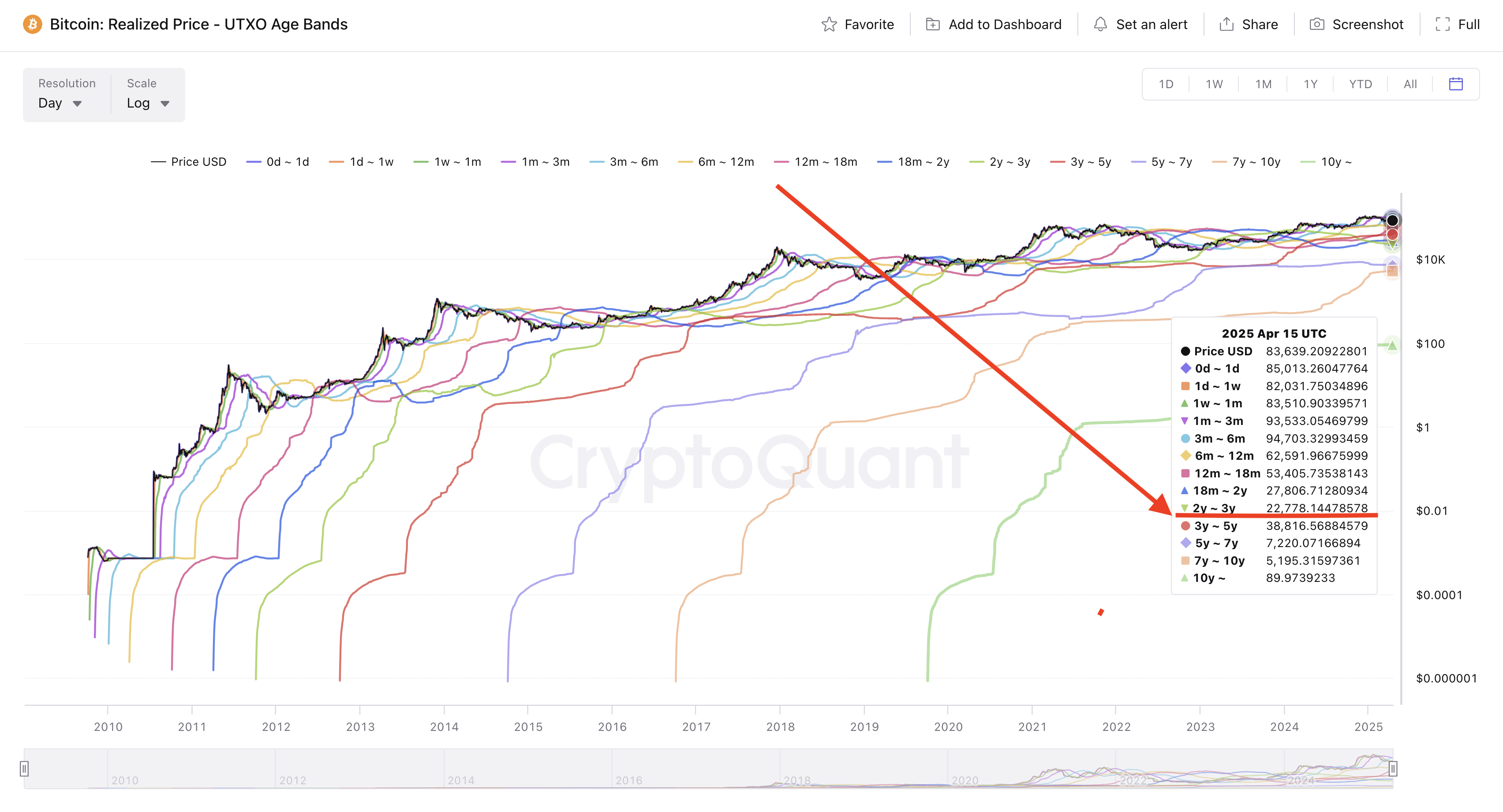 Tra le migliori metriche dove possiamo apprezzare il Smart Money nell'ecosistema di BTC c'è Bitcoin: Prezzo Realizzato - Bande di Età UTXO, in questa si può apprezzare il Prezzo Realizzato per ogni banda di holding.