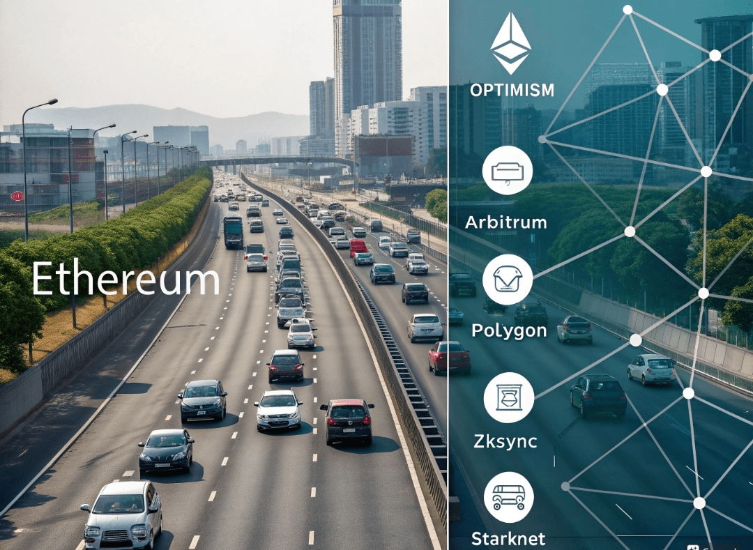 Pensa a Ethereum (o ad altre blockchain affollate) come l'autostrada principale (quella singola corsia congestionata di cui abbiamo parlato). Le soluzioni Layer 2 sono come costruire super-efficienti autostrade a più corsie proprio accanto o anche leggermente sopra l'autostrada principale.