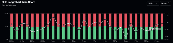 Negli ultimi tre giorni, il recupero a breve termine di Shiba Inu ha portato a un aumento delle posizioni lunghe nel mercato dei derivati. Secondo il grafico del rapporto long-to-short di Coinglass, le posizioni lunghe in Shiba Inu sono aumentate dal 47.19% al 49.77% negli ultimi tre giorni.