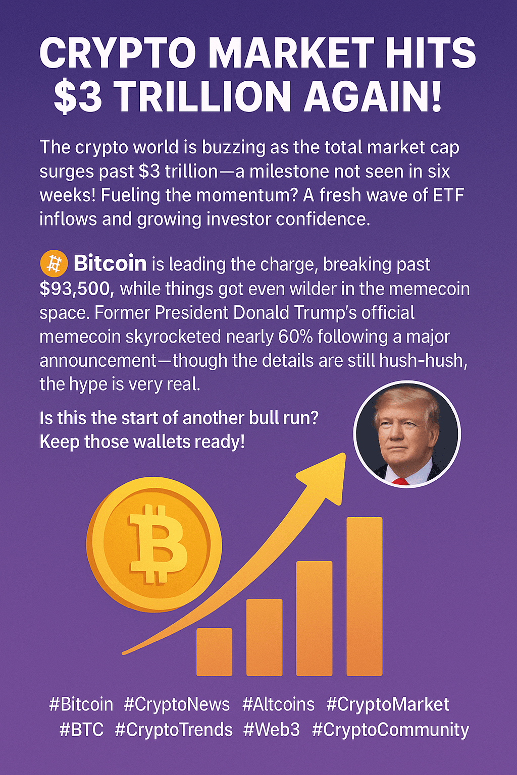 Bitcoin sta guidando la carica, superando i $93.500, mentre le cose sono diventate ancora più folli nel mondo dei memecoin. Il memecoin ufficiale dell'ex presidente Donald Trump è schizzato quasi del 60% dopo un annuncio importante—anche se i dettagli sono ancora riservati, l'hype è molto reale.