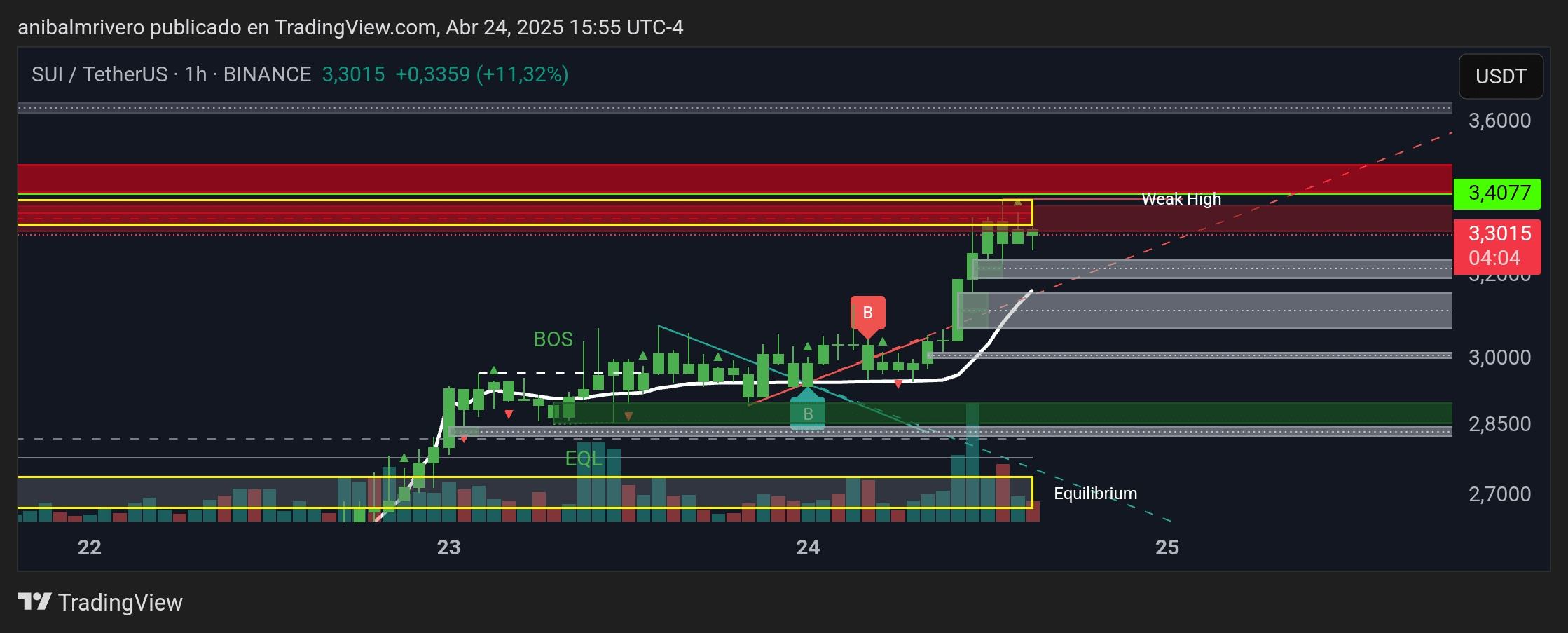 Saluti, comunità di Binance! Oggi ci immergiamo nell'analisi tecnica di SUI/USDT nel grafico di 1 ora, cercando opportunità per capitalizzare i movimenti del mercato.