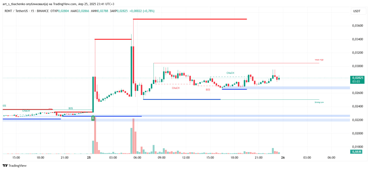 - Grandi ordini a $0.02833–0.02848 (fino a 173K RDNT a $0.02833)