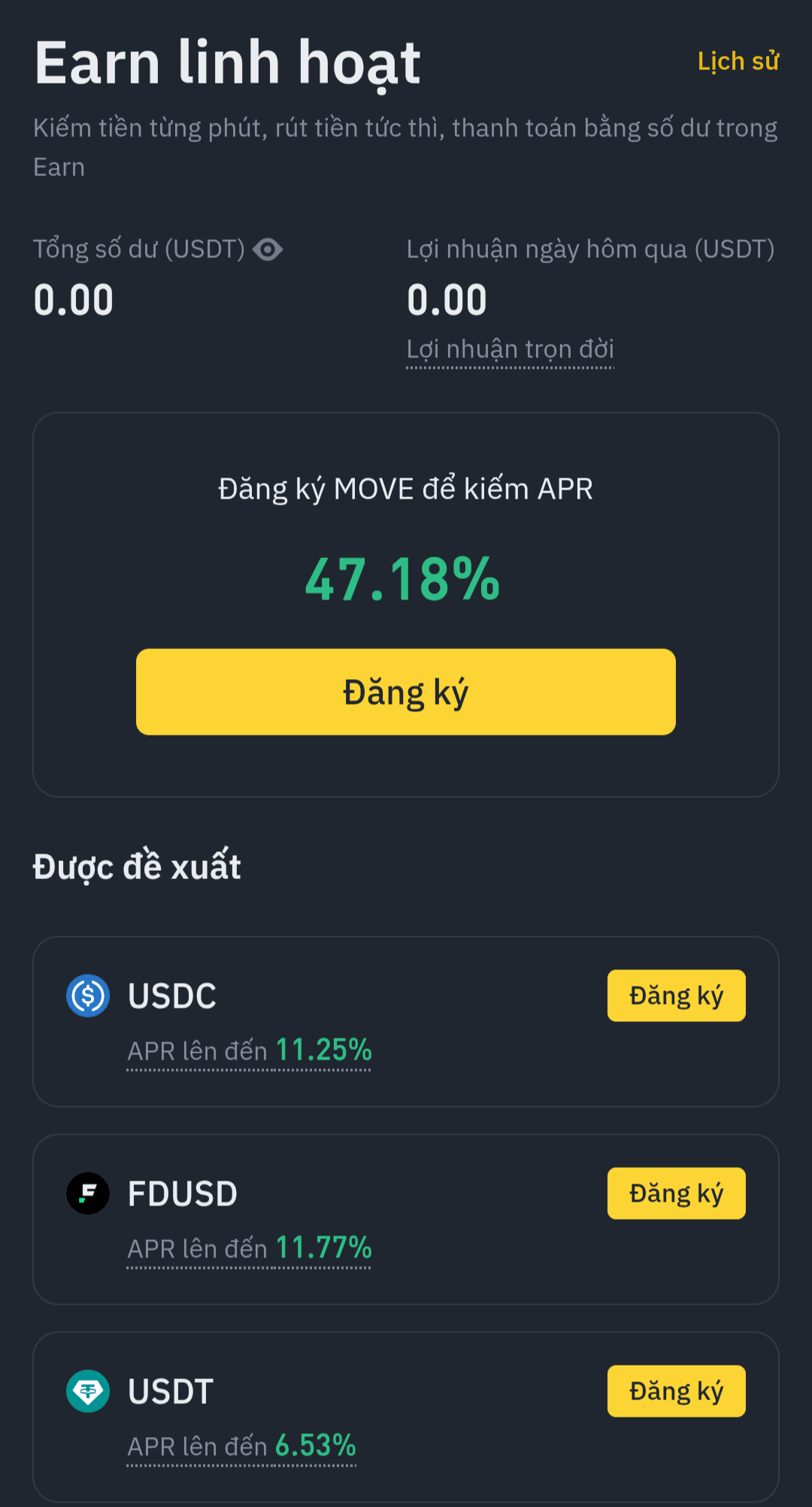 2. Vai alla sezione #FlexibleEarn → Registrati per Flexible per ogni coin.