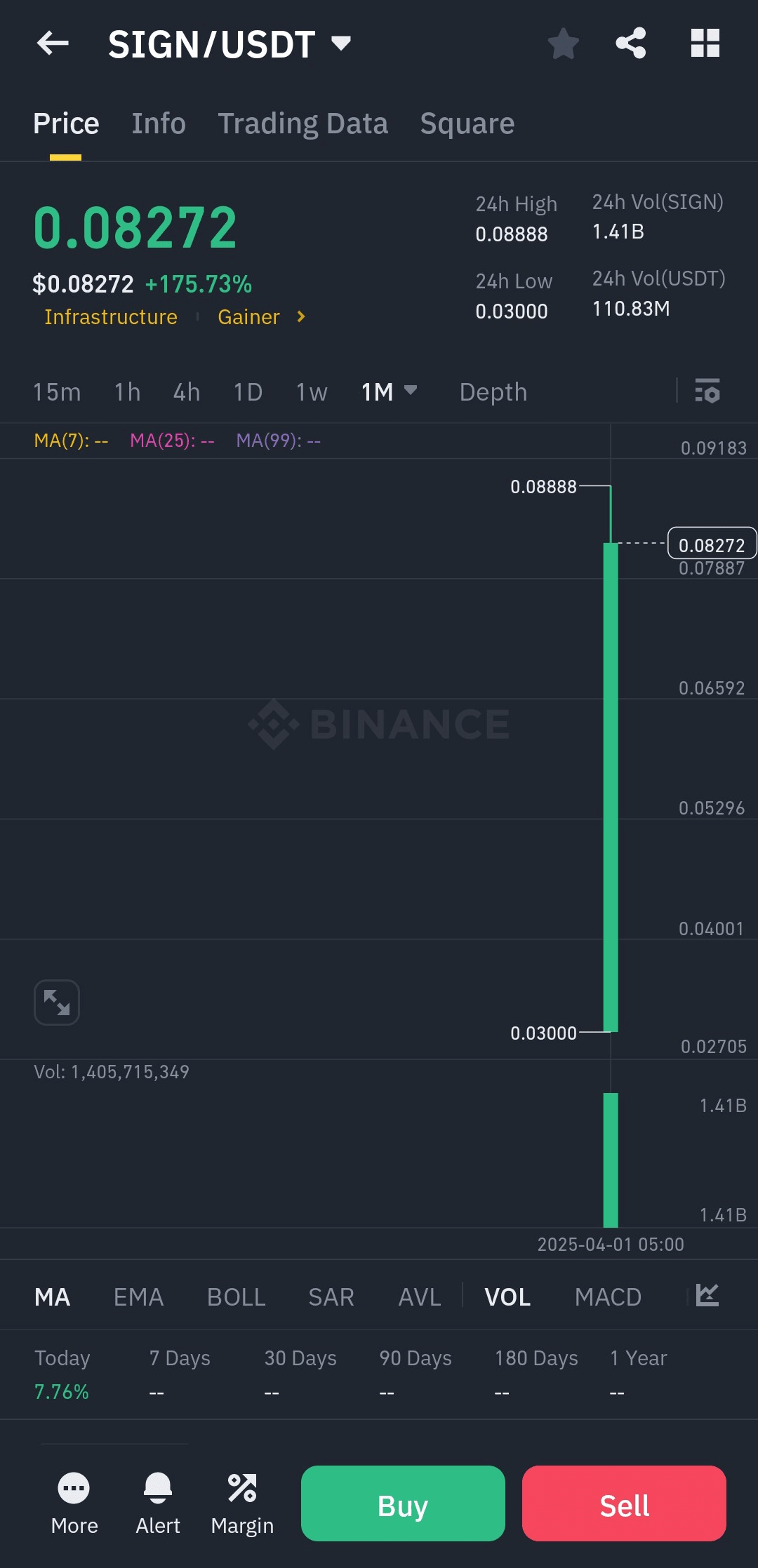 Il 28 aprile 2025, Binance ha ufficialmente lanciato il trading per Sign (SIGN), un promettente nuovo progetto blockchain focalizzato sulla verifica dell'identità digitale e sulla distribuzione dei token. La quotazione ha suscitato grande attenzione nel settore delle criptovalute, con il prezzo di SIGN che è aumentato del 15% in soli 15 minuti dal lancio.
